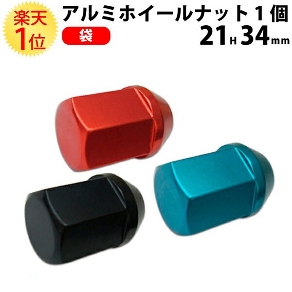 【仕様】 種類 : 60°テーパー座 形状 : 袋 材質 : アルミ 色 : 黒 / 赤 / 青 全長 : 34mm ネジ径 : M12xP1.25 / M12xP1.5 有効ネジ : 28mm 二面幅 : 21HEX ツバ径 : 24mm 重量 : 26g 【注意点】 当商品の適合は、メーカー純正ホイールでの使用を前提としております。